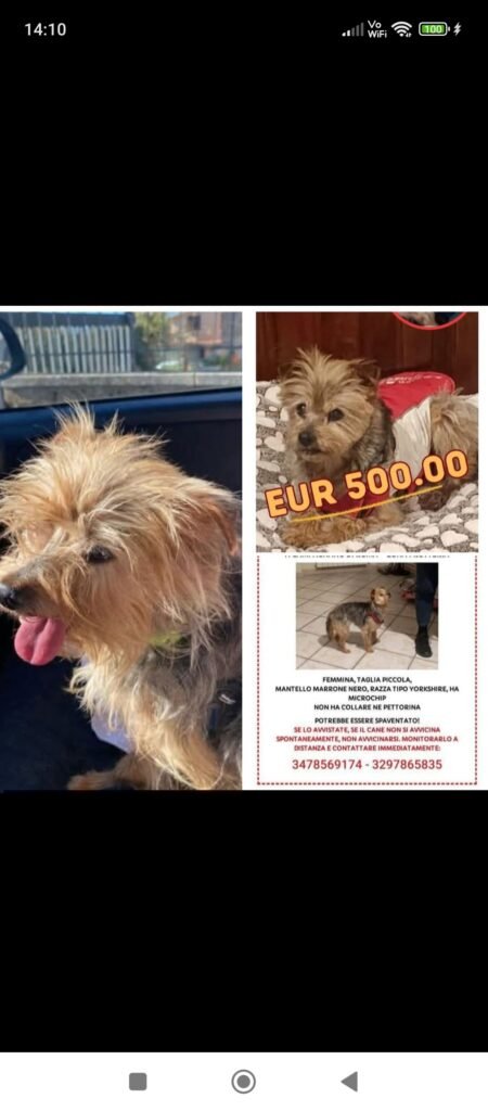 Cane smarrito in data 8 febbraio 2026 a Teggiano (SA), Via Provinciale Teggiano Polla (prato perillo). Femmina, taglia media, colore marrone, microchip 380260044617542. Si chiama Milly ed è sterilizzata. È molto docile. Se vista, per favore contattare il numero 3382810450. […]