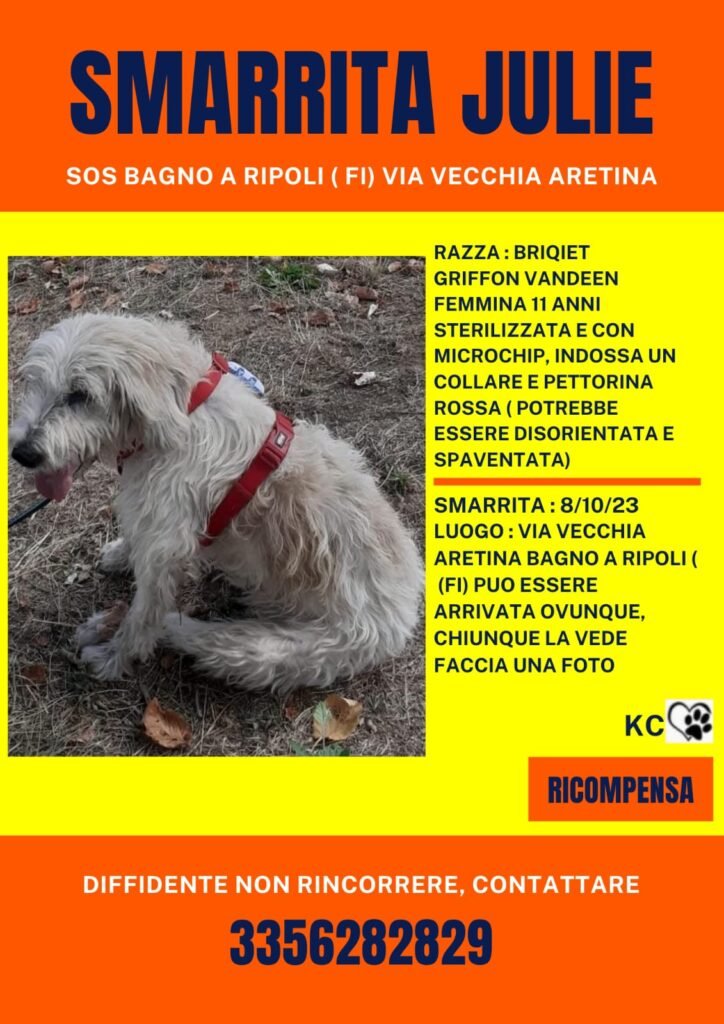 Purtroppo di Mafalda nessuna notizia…la stanno continuando a cercare e sono stati appesi volantini, contattato USL e vigili. È scappata dal cancello del giardino domenica sera alle 24 circa, zona Mucciano località le Ville. Per qualsiasi comunicazione, contattare il numero 3668657248 oppure il 3802424516 […]