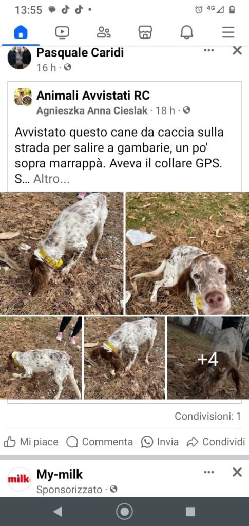 URGENTE – CAGNOLINA SMARRITA La notte tra il 18 e il 19 agosto 2025 è scomparsa la nostra cagnolina, un Setter Inglese bianco e nero di 3 anni e mezzo. È molto dolce ma potrebbe essere spaventata. Se qualcuno l'ha vista o ha informazioni, vi prego di contattarmi subito al 3887713881. Zona: Riace Marina vicino […]