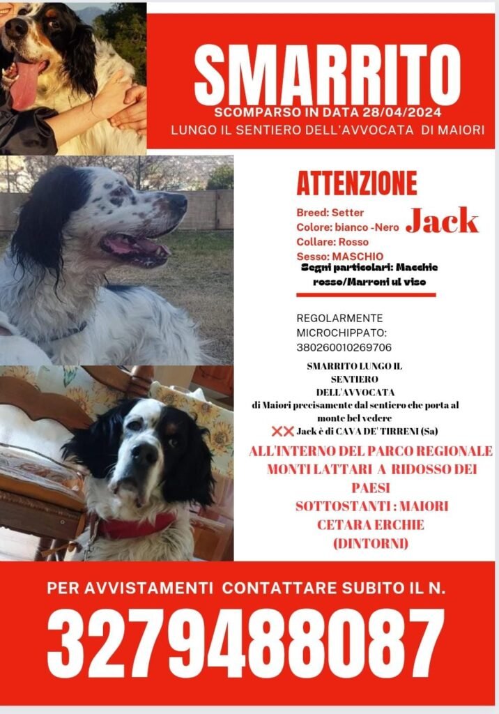 🏡🐕 JACK È TORNATO A CASA 🎉💕 Il cane è precipitato in dal sentiero del monte vicinissimo al monte dell'Avvocata di Maiori. La caduta è stata attenuata dalla vegetazione … all'arrivo dei soccorsi il.cane si è spaventato dunque deve essere scappato scendendo verso i paesi della Costiera Amalfitana (Vietri, Cetara, Maiori etc.) Non si esclude […]