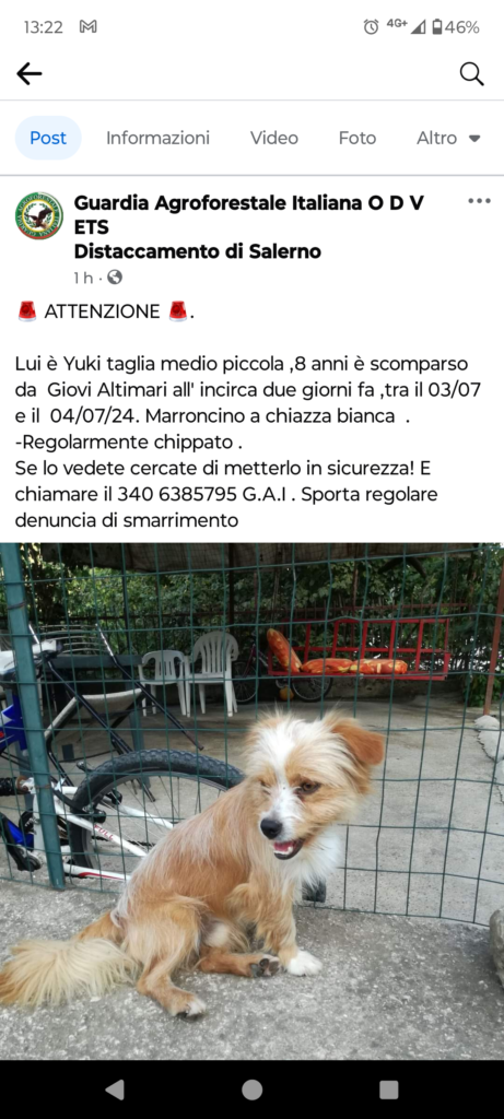 SONO STATO VISTO L'ULTIMA VOLTA IL 12 AGOSTO A PONTECAGNANO FAIANO (SA). SONO MOLTO DOLCE. MI RICONOSCI DAGLI ALTRI CANI PERCHE HO UNA CICATRICE SUL NASO, UNA SOTTO L'OCCHIO SINISTRO E UN'ALTRA POCO SOPRA IL LABBRO DESTRO. SE MI VEDI CONTATTA QUESTI NUMERI PER FARMI TORNARE DALLA MIA FAMIGLIA, ANCHE SE NON SEI SICURO CHE […]