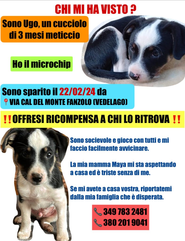 Il nostro cagnolino è stranamente scomparso la sera del 14 marzo. Non si è mai allontanato da casa, specialmente con il buio, per questo motivo abbiamo il sospetto che qualcuno c'è lo abbia rubato. Vi prego di contattarmi in caso di avvistamenti! […]