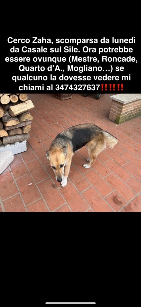 Cerco il mio cane, Zaha, scomparsa da martedì mattina da Casale sul Sile (TV). Chiunque la veda mi contatti 3474327637 […]